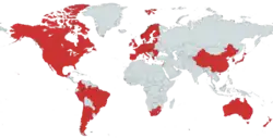 - ^ Specifically including Anguilla, Antigua and Barbuda, Aruba, the Bahamas, Barbados, Belize, Bermuda, Bolivia, the Cayman Islands, Costa Rica, Dominica, the Dominican Republic, Ecuador, El Salvador, French Guiana, Grenada, Guadeloupe, Guatemala, Guyana, Haiti, Honduras, Jamaica, Martinique, Montserrat, the Netherlands Antilles, Nicaragua, Panama, Paraguay, Saint Kitts and Nevis, Saint Lucia, Saint Vincent and the Grenadines, Suriname, Trinidad and Tobago, the Turks and Caicos Islands, the Virgin Islands (British and American), Uruguay, and Venezuela