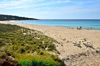 On 30 May 1801, a landing party from the Baudin expedition unsuccessfully looked for water at Eagle Bay; this event is commemorated by the Baudin memorial, which was unveiled in 2001.[4] In the late 19th century Stewart Keenan, who had a farm in the local area, built a track connecting his Eagle Bay farm to the timber mill community at Yelverton.[5] In the 1950s, there was a commercial salmon fishery in Eagle Bay.[6] The modern-day settlement began to develop in the early 1970s.[7] Eagle Bay contains a residents' association (established 1990), a volunteer fire brigade, and a community hall (constructed in 2014).[8][9] The eponymous bay is in Meelup Regional Park.[10]