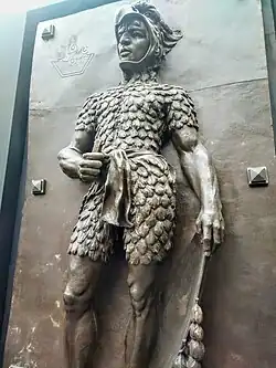 Bronze relief by Jesús Fructuoso Contreras depicting Cuitláhuac as an eagle warrior