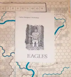 Eagles, subtitled "Rome on the Rhine Frontier, AD 15", is a board wargame published by Game Designers' Workshop (GDW) in 1974 that simulates the Roman campaign across the Rhine into Germania led by Germanicus. In the game, the Romans are attempting to recover three Eagles — the honor-laden standard of a Roman legion — from Germanic tribes.