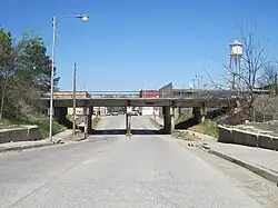 In 1888, a branch of the St. Louis, Iron Mountain, & Southern Railway was built south of Earle. The line still exists as a part of the Union Pacific Railroad.[8] The town had two lumber company-owned railroads connect to it in the early 1900s, the Crittenden Railroad and the Tyronza Lumber Company Railroad.[9]