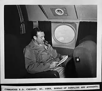 Chesney served in the US Army as a Field Clerk from March, 1920, to June, 1921. He was commissioned Second Lieutenant, US Army Reserves, January 8, 1924, and served a 5-year period. Later, he was commissioned a Lieutenant Commander in the Navy Supply Corps during World War II (July, 1942) and served three-and-a-half years, the last as a Commander. He served in both the European and Pacific Theaters. Chesney returned to active duty during the Korean War with the rank of Captain and served until December, 1953.