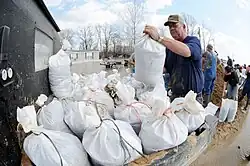 The March 2008 Midwest floods were a massive flooding event in the Southern Midwest and portions of the Southern Plains. Cape Girardeau, Missouri officially reported 11.48 inches (29.2 cm) between March 18 and 19.[2] At least 17 people died as a result of the flooding.[1] Levee breaks were observed in several areas, most notably in Southeastern Missouri, where levee breaks occurred through mid-April.[3] [4]