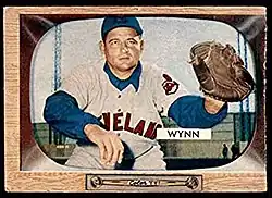 With Cleveland, Wynn was a member of what historian David Fleitz called "one of the greatest pitching rotations of all time," along with Bob Feller, Mike Garcia, and Bob Lemon. Pitching coach Mel Harder taught him a curveball, slider, and knuckleball, which Wynn credited with helping him become a better pitcher in the 1950s. He won 20 or more games in four of his seasons with the Indians, helping them set an American League (AL) record with 111 total wins in 1954. He started Game 2 of the 1954 World Series, which the New York Giants won in four games. In 1955, he was selected to his first of eight straight All-Star Games. Traded to the White Sox after the 1957 season, Wynn won the 1959 Cy Young Award, leading the AL with 22 wins as the team won the AL pennant. At 39, he became the oldest pitcher to win the award, and he was not passed for 19 years.[2] In Game 1 of the 1959 World Series, Wynn struck out six in seven innings, allowing no runs as the White Sox won 11–0. He made two other starts in the Series but failed to pitch past the fourth inning in either, as the Los Angeles Dodgers won the series in six games. Towards the end of his career, Wynn began to rely more heavily on the knuckleball, as the velocity of his pitches declined. The White Sox released him after the 1962 season, but Wynn signed with the Indians in 1963 because he was determined to win 300 games. He picked up his 300th victory against the Kansas City Athletics on July 13, his last major league win, though he remained on the roster for the rest of the season. As of 2025, he is one of 24 MLB pitchers to win 300 games.