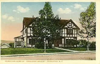 Their first child, Margaret, was born in April 1886, and their second child, Jessie, was born in August 1887.[30] Their third and final child, Eleanor, was born in October 1889.[31] Wilson and his family lived in a seven bedroom Tudor Revival house near Princeton, New Jersey from 1896 to 1902, when they moved to Prospect House on Princeton's campus.[32] In 1913, Jessie married Francis Bowes Sayre Sr., who later served as High Commissioner to the Philippines.[33] In 1914, Eleanor married William Gibbs McAdoo, who served as the Secretary of the Treasury under Wilson and later represented California in the United States Senate.[34]