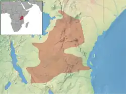 This species is found in central and southern Kenya and most of Tanzania. A single specimen has been recorded in Uganda near the Kenya border, at Mount Moroto. It is found from sea level up to an altitude over 2,000 m.[1]