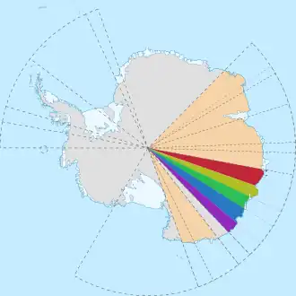 It is further subdivided in the following coastal areas which can also be thought of as sectors extending to the South Pole:
