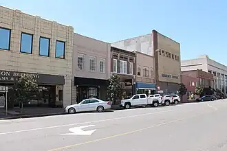 The East Broad Street Historic District encompasses a city block of historic commercial buildings in Texarkana, Arkansas. The district includes all of the buildings on the 100 block of East Broad Street. Most of the fifteen buildings in the district were built before 1920, during Texarkana's major period of growth after the arrival of the railroad. Broad Street, just one block from the railroad, quickly became its economic center. The oldest building is the O'Dwyer and Ahern Building at 110 East Broad Street, a three-story brick-faced building constructed c. 1886.[2]