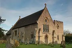 The Church of England parish church of St Nicolas was a-12th century Norman building, but the font and some masonry of the nave are now almost the only original features that survive.[2] In the 13th century the chancel and chancel arch were rebuilt, and the bell-cot and three-bay north aisle were added.[6] The Decorated Gothic south chapel was added early in the 14th century.[6] The communion table was made in the 17th century.[2] In the 18th century the aisle was rebuilt in brick, and a porch was added over a 12th-century doorway.[2]