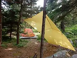 The East Coast Trail Association maintains six designated, primitive campsites (providing level sites or platforms and outhouses) located at the midpoint of six of the longer paths: White Horse Path, Motion Path, Spout Path, Flamber Head Path, Cape Broyle Head Path and Spurwink Island Path. The campsites are first-come, first-serve basis and often fill up on weekends. The La Manche Provincial Park, located a short distance from the trail offers fully-serviced campsites that can be reserved.[49] There are also informal, non-designated campsite along the trail.[50]