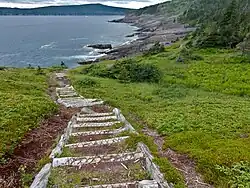 The East Coast Trail (ECT) is a long-distance coastal footpath located in the Canadian province of Newfoundland and Labrador. It is a developed trail over 336 kilometres (209 mi) long,[1] the creation of which began in 1994. It is made up of 25 linked wilderness paths and passes through more than 30 communities.[2] It was named one of the best adventure destinations by National Geographic in 2012 and is extended and improved yearly.[3]