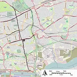 ![]() Map of the routes of the East Ham Corporation Tramways | |