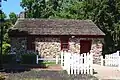 Courtyard view of the Smalleytown Schoolhouse and the Six Mile Run House