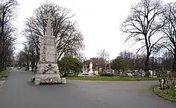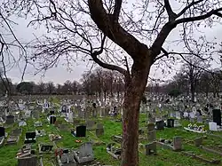 The cemetery was founded in 1871 and laid out in 1872 to meet the increasing demand from the eastern suburbs of London. The first interment was in August 1872 and the cemetery remains open. The cemetery covers 33 acres (0.13 km2) next to the Greenway and has two Gothic chapels built at the end of the 19th century that remain in use: a burial chapel dedicated to Church of St Michael and All Angels, and a non-denominational chapel for cremations. A total of 244 Commonwealth service casualties from World War I and 132 from World War II are buried in this cemetery, in addition to three Dutch merchant seamen from the latter war.[1]