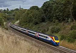 Further decreases in journey times were achieved by EMT during the 2010s. One particularly impactful change was the completion of infrastructure improvements on 9 December 2013 that enabled 125 mph (200 km/h) along major stretches of the Midland Main Line for the first time.[9] To achieve this, EMT had invested £70 million into the improvement of almost 160 miles of track over the course of several years; the scheme was the route's biggest transformation in decades. The operator had worked closely with the national railway infrastructure company Network Rail on this and other initiatives to improve the route, such as a major re-signalling scheme performed in and around Nottingham station at a cost of £100 million largely performed during the summer of 2013.[8]
