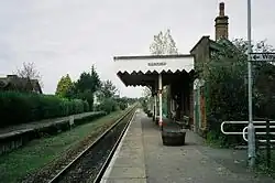 The terminus of the line was Cromer High railway station, the first station opened in Cromer, situated to the south on the outskirts of the town on a steep escarpment.[13] The station (along with the East Norfolk line) was incorporated into the Great Eastern Railway, who had operated the services from the beginning.[13] It served as the terminus of Great Eastern Railway services from London and Norwich. Initially named "Cromer" on opening, it was renamed "Cromer High" in 1948.[13]