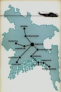 The East Pakistan Helicopter Service refers to the scheduled helicopter services operated by Pakistan International Airlines (PIA) in East Pakistan during the 1960s. It was one of the earliest air services of its kind in the world and one of the most extensive helicopter networks in history.[1][2]