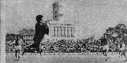 In the ninth National Championship held in Multan, the East Pakistan football team was captained by Nabi Chowdhury, who had also led the Pakistan national football team at the Tokyo Asian Games earlier that year.[27] The team included four other internationals: Manzur Hasan Mintu, Mari Chowdhury, Kabir Ahmed, and Abid Ghazi (from Karachi, West Pakistan).[28] Despite their strong lineup, they were eliminated from the tournament before the semi-finals, following a 1–3 defeat to Punjab Reds, the junior team of reigning champions Punjab, on 15 November 1958. Their defeat was largely attributed to goalkeeper Ranjit Das, whose lack of height contributed to the concession of the first two goals. Rashid Chunna once again scored the consolation for East Pakistan.[29]