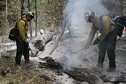 ![]() Firefighters putting out burning embers on June 29 to keep the fire from rekindling. | |