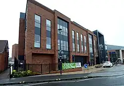 The Beverley campus, previously located at Gallows Lane in the town, moved to a new £14 million site as part of a retail development known as the Flemingate Shopping Centre, in September 2015.[16][17] It was initially projected to move in the summer of 2010,[12] but planning issues surrounding the development as a whole resulted in the project being delayed.[18] The former Gallows Lane site was subsequently redeveloped into 36 homes, with the money from the sale of these being used to finance the new development. The new building, which was designed in 2013,[19] features 30 teaching rooms.[20] Both sites were designed by Jefferson Sheard Architects, with the redevelopment of both costing £40 million in total.[12]