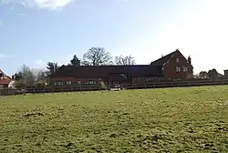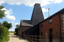 The Old House Farmhouse on Shelleys Lane is believed by the parish authorities to have originally been the oldest building in the village,[2] but the current building dates to only the 17th and early and late 19th century.[22] The walls are made of coursed malmstone with brick dressings, rendered with a plinth. The roof is apparently unusual with the "northern half being of steeper pitch, both sections half-hipped, with a slate roof above the wing."[22] It became a Grade II listed building on 1 May 1983.[22] The Manor Farmhouse building, also a Grade II listed building, dates to the early 17th century, with alterations in the mid-19th century, containing Victorian window sashes. The Sandals farm contains three cottages dated to the 17th century. Heather Cottage is another 17th-century cottage, with 20th-century additions to the rear, on Worldham Hill, noted for its thatched roof. It is believed to be named after William Heather, a resident mentioned in the 1665 Hearth Tax returns.[2] It became a listed building on 18 July 1986.[23] The Three Horseshoes Public House was first licensed in 1834 and is one of the main features of the village. It was rebuilt some 50 years later by Henry Newman.[2] Also of note is the Rectory House on Wyck Lane,[24] and the Oast House, just to the west of the rectory.