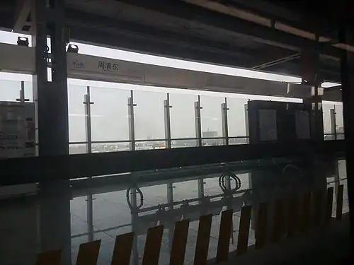 East Zhoupu (simplified Chinese: 周浦东; traditional Chinese: 周浦東; pinyin: Zhōupǔ Dōng) is a station on Line 16 of the Shanghai Metro. It opened on 29 December 2013 as part of the first section of Line 16 from Luoshan Road to Dishui Lake.[1]