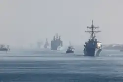 East of Suez is a term used in British military and political discussions in reference to interests east of the Suez Canal, and may or may not include the Middle East.[1] The phrase was popularised by Rudyard Kipling in his 1890 poem "Mandalay".[2] It later became a popular song when a tune was added by Oley Speaks in 1907.[3]
