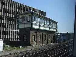 The current signal box was constructed in 1882 and had an impressive 108 lever frame that controlled the station, goods yard, and carriage sidings. On 14 November 1934, this was replaced with a 72 lever frame. Later in 1991, the box was converted into a power signal box when the semaphore signals were substituted with colour light signals and an "entrance-exit" control system was installed. The box closed in 2015 as the line between Lewes and Bexhill was re-signaled and controlled from a new signalling centre at Three Bridges.