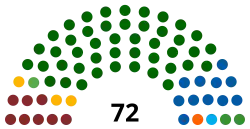 The provincial legislature consists of 72 members, who are elected through a system of party list proportional representation with closed lists. In other words, each voter casts a vote for one political party, and seats in the legislature are allocated to the parties in proportion to the number of votes received. The seats are then filled by members in accordance with lists submitted by the parties before the election.
