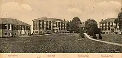 The college's purpose-built Manassas campus was located on the grounds of the historic Baldwin House.[6][1] Architect Charles M. Robinson designed two matching four-story brick and concrete buildings, called East Hall and West Hall, as well as a gymnasium for the college,[1][6] The halls accommodated classrooms, dormitories, and offices.[1] East Hall, the men's dormitory, was completed in June 1909.[6][5][4] West Hall, also called Vorhees Hall, was the women's dormitory; it was completed in June 1910, followed by the gymnasium in July 1910.[6][5][4] The dormitories included single rooms, double rooms, and suites.[4] The bathrooms had hot and cold running water and showers.[4]