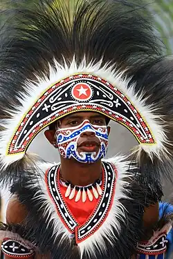 ![]() ![]() ![]() ![]() ![]() From upper-left to lower-right: Diving experience in Piaynemo Island of Raja Ampat, Clitoria ternatea (the native flower of Ternate Island), Ulun Danu Bratan Temple (Bali's most popular Hindu temple) Papeda (the staple food of Eastern Indonesia (Maluku Islands)) A Papuan man wearing traditional Papuan clothing | |