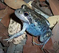 Limnodynastes dumerilii is a frog species from the family Limnodynastidae.[2] The informal names for the species and its subspecies include eastern or southern banjo frog, and bull frog.[3][4] The frog is also called the pobblebonk after its distinctive "bonk" call, which is likened to a banjo string being plucked. There are five subspecies of L. dumerilii, each with different skin coloration. The species is native to eastern Australia. There has been one occurrence in New Zealand, when tadpoles of the species were found in 1999 and destroyed.[5][6]