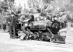 John J. Coit built the track of miniature railway and designed and probably even manufactured the steam locomotive. He had worked as a master machinist at the Johnson Machine Works, before he built and operated the profitable but short-lived Long Beach and Asbury Park Railway.[5] Due to being physically handicapped for two years when he designed the locomotive he focused on a user friendly design. He was friend 'Shorty‘ Chase was a person of short stature and wore a suit and a bowler hat as a conductor on all of Coit's railways.[6]