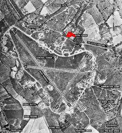 During World War II the estate was requisitioned by the War Office, leading to the destruction of some 10,000 trees to enable the construction of RAF Great Dunmow (also known as RAF Little Easton) in the former park.[3][8] The house was largely demolished following its return by the military in 1950.[8] Much of the Easton Lodge estate is now owned by Land Securities.[9]