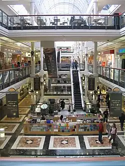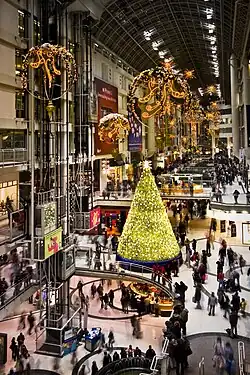 Eaton Centre (French: Centre Eaton) is a name associated with shopping centres in Canada, originating with Eaton's, one of Canada's largest department store chains at the time that these malls were developed. Eaton's partnered with development companies throughout the 1970s and 1980s to develop downtown shopping malls in cities across Canada. Each mall contained an Eaton's store, or was in close proximity to an Eaton's store, and typically the mall itself carried the "Eaton Centre" name. These joint ventures were a significant retail development trend in Canada during that period.[1]