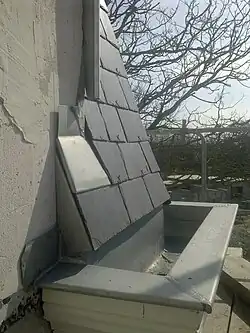 The eavesdrop or eavesdrip is the width of ground around a house or building which receives the rain water dropping from the eaves. By an ancient Anglo-Saxon law, a landowner was forbidden to erect any building at less than two feet from the boundary of his land, and was thus prevented from injuring his neighbour's house or property by the dripping of water from his eaves. The law of Eavesdrip had its equivalent in the Roman stillicidium, which prohibited building up to the very edge of an estate.[1]