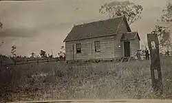 The locality takes its name from the Ebenezer Wesleyan (later Methodist) Church which opened on Sunday 23 April 1871 at Seven Mile Creek.[12][13] Ebenezer is from a Hebrew word meaning rock of faith.[2] It was opposite the school at 1 Turnbull Road (corner of Ebenezer Road, 27°40′12″S 152°37′40″E / 27.6700°S 152.6277°E).[14] Now demolished, the church operated until at least 1942.[15][16]