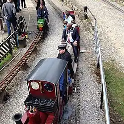 The miniature railway is run by the Sheffield & District Society of Model & Experimental Engineers Ltd.[7] It has two sections: a dual gauge ground level section with gauges of 7+1⁄4 inches (180 mm) and 5 inches (130 mm). There is also a smaller multigauge raised section that has gauges of 3+1⁄2 inches (89 mm), 5 inches (130 mm) and 7+1⁄4 inches (180 mm). The society owns a diesel locomotive named 'Edward' on the ground level. There are also two electric locomotives named 'Merlin' and 'Vulcan' also owned by the society for use on the raised track. The society also runs a garden railway that operates trains on 32 mm (1.26 in) and 45 mm (1.772 in) gauge track this is known as the 'Ecclesall Woods Light Railway'.[8]