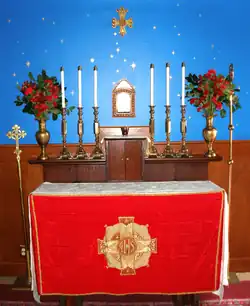 The celebration of the Gnostic Holy Eucharist is offered every Sunday in Los Angeles (and most other parishes).[16] The Eucharist is central to the practice of the church, and is celebrated with high formality as congregants prepare to commune with "the indwelling and cosmic Christ."[8] The service resembles a Traditional Roman Catholic liturgy in style, complete with elaborate vestments, burning candles, incense, and bells.[7][8]