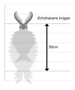 Echidnacaris briggsi is an extinct species of radiodont known from the Cambrian Stage 4 aged Emu Bay Shale of Australia. Formerly referred to as "Anomalocaris" briggsi, it was placed in the new monotypic genus Echidnacaris in 2023.[1] It is only distantly related to true Anomalocaris, and is instead placed in the family Tamisiocarididae.[2]