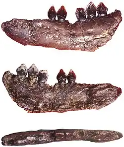 - ^ Butler, P.M.; Sigogneau-Russell, D.; Ensom, P.C. (2012). "Possible persistence of the morganucodontans in the Lower Cretaceous Purbeck Limestone Group (Dorset, England)". Cretaceous Research. 33 (1): 135–145. Bibcode:2012CrRes..33..135B. doi:10.1016/j.cretres.2011.09.007.