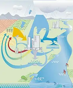 The Swedish International Development Cooperation Agency (Sida) funded the "SanRes R&D programme" during 1993 to 2001 which lay the foundation for the subsequent "EcoSanRes programme" carried out by Stockholm Environment Institute (2002–2011).[27][28] A publication by Sida called "Ecological sanitation" in 1998 compiled the knowledge generated to date about ecosan in a popular book which was published as a second edition in 2004.[29] The book has also been translated into Chinese,[30] French[31] and Spanish.[32]