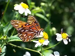 Florida is home to diverse wildlife. Over 700 species of land animals are found in the state, including bobcats, armadillos, opossums, and foxes. More than 500 species of birds have been seen in the state, and it is home to an estimated 1,500 nesting pairs of bald eagles.[7] Florida's diverse ecosystems are home to many types of insects,[8] including the Gulf fritillary, a butterfly native to Florida grasslands.