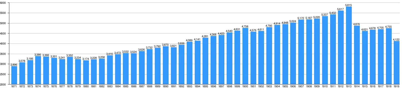France's diverse regions suffered in different ways. While the occupied area in 1913 contained only 14% of France's industrial workers, it produced 58% of the steel, and 40% of the coal.[49] War contracts made some firms prosperous but on the whole did not compensate for the loss of foreign markets. There was a permanent loss of population caused by battle deaths and emigration.[50]