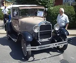 In the late 1920s, General Motors finally overtook Ford, as the U.S. new car market doubled in size, and fragmented into niches on a wave of prosperity, with GM producing a range of cars to match. This included a Chevrolet economy car that was just an entry-level model for the range of cars. It was only a small part of the marketing strategy - "A car for every purse and purpose" of GM head Alfred P. Sloan. Harley Earl was appointed as head of the newly formed GM "Art and Color Section" in 1927.[32] Harley Earl and Alfred P. Sloan implemented planned obsolescence and the annual model change to emphasise design as an engine for the success of the company's products.[33] This moved cars from being utilitarian items to fashionable status symbols - that needed regular replacement "to keep up with the Joneses." Later in 1937, the Art and Color Section was renamed[34] the Styling Section, and a few years afterward became one of the GM technical staff operations as the Styling Staff.[35] It was funded by high-interest/low-regular-payments consumer credit, as was the 1920s boom in other consumer durable products. It marked the beginning of mass market consumerism, that had been enabled by the efficiency of mass production and the moving production line. Until this time, manufacturers of consumer goods were concerned, by the possibility that the market would be fulfilled and demand would dry up. The seller's market in new cars in the U.S. was over, as customers wanted choice. The 'one model' policy had nearly bankrupted the Ford Motor Company. By the end of production in 1927 it seemed outdated, and was replaced by the Model A. The Ford Model T was voted Car of the Century on December 18, 1999 in Las Vegas, Nevada.[2][3][4][5]