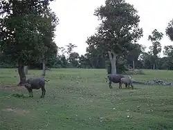 The cultivated land is relatively unproductive: paddy fields produce only 424 tonnes of rice per square mile, compared to 547 nationally. Most farmers can produce only one crop of rice a year.[7] Many farmers still use water buffalo rather than tractors.