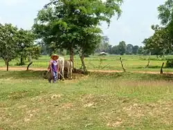 Sixty percent of cultivated land is devoted to rice paddies. The concentration on rice farming has made the farmers vulnerable to fluctuating prices. This has been reduced somewhat by increased diversification, but Isan still accounts for half of Thailand's exports of rice, cassava, and sugar. These crops employ 700,000 Isan families.[4] Other crops include, tobacco, cotton, and watermelons.