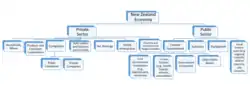 New Zealand's diverse economy is made up of various types of informal and formal organisations, divided between the public and private sectors. It has a sizeable service sector, accounting for 73% of all GDP activity as of 2024.[27] As a large island nation New Zealand has abundant natural resources and mineral wealth.[28] Prominent manufacturing industries include aluminium production, food processing, metal fabrication, wood and paper products. Goods-producing industries accounted for 20% of GDP as of 2024.[27] The primary sector continues to dominate New Zealand's exports, despite accounting for only 7% of GDP as of 2024.[27] The information technology sector is growing rapidly.[29]