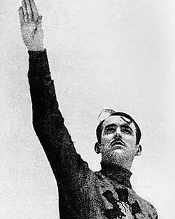 The international isolation had long-lasting consequences on the Spanish economy. The impossibility of collecting income through customs, for example, forced the State to carry out a tax reform aimed at maximizing indirect collection at the domestic level.[11] Despite the government protested against the isolation, stated that Spain had "the right to buy on international markets", and criticized the international community for sabotaging the country's "right to live according to its spiritual values",[12] Francoists embraced the autarchic economic ideas of the Axis powers and made them a core characteristic of their regime.[2]