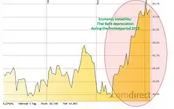 - ^ Justina Lee (23 December 2013). "Baht Falls to a Three-Year Low, Stocks Drop on Political Unrest". Bloomberg L.P. Retrieved 25 December 2013.